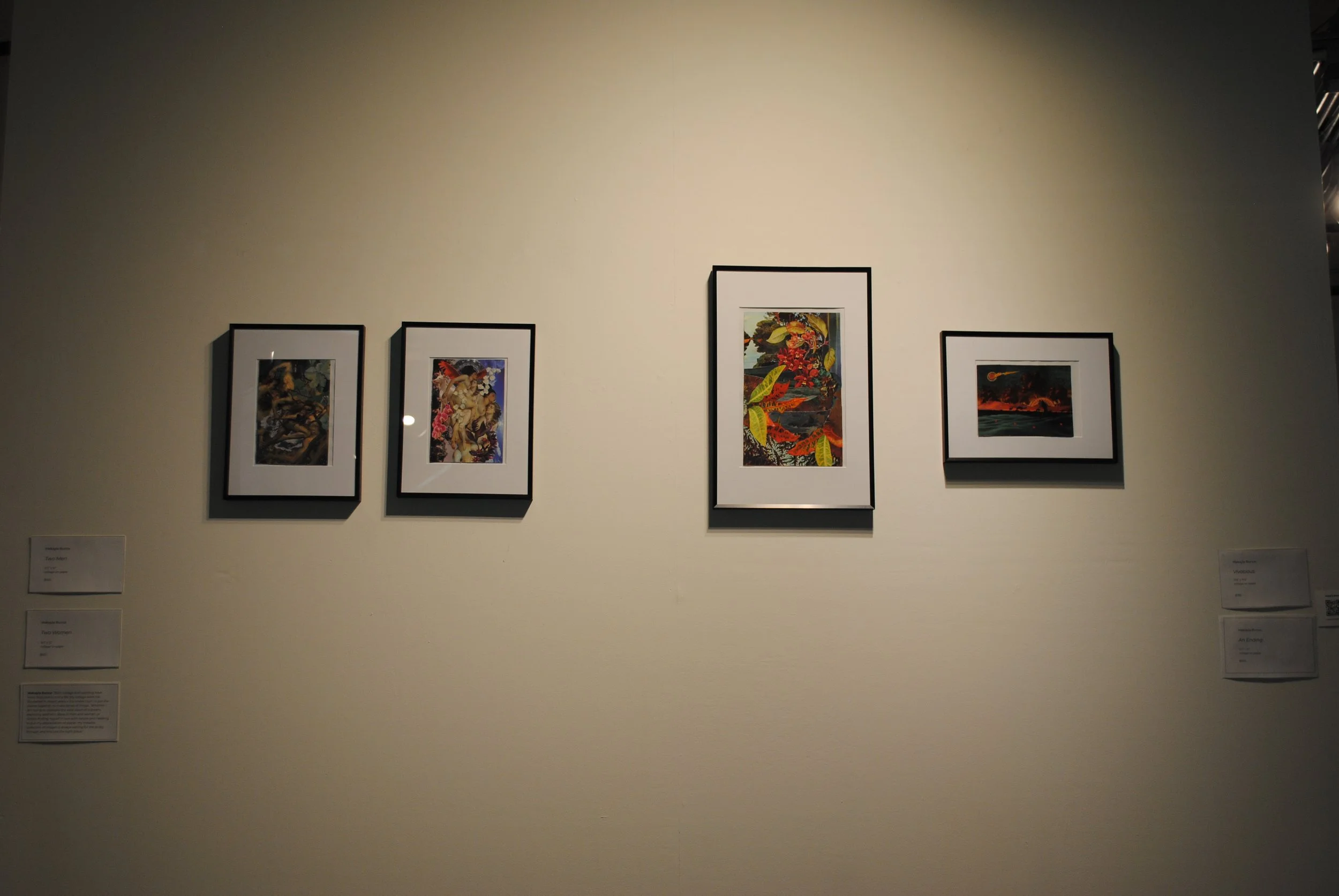 I showed four of my collage pieces, Two Men, Two Women, Vivacious and An Ending.
