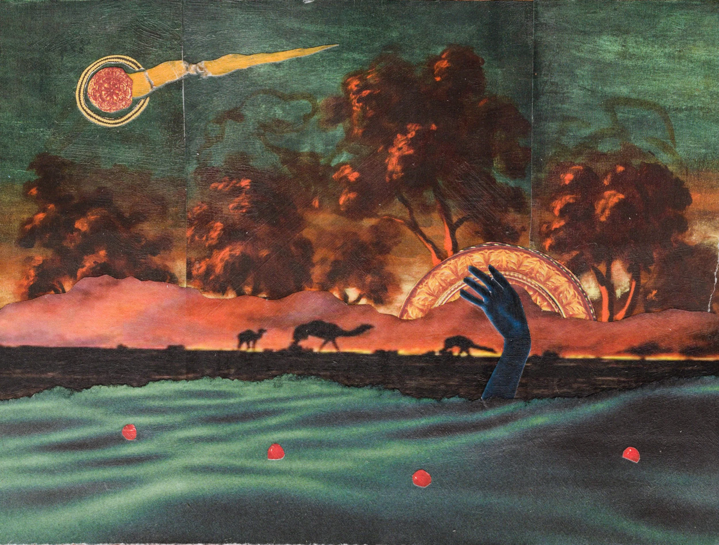 Ithaca Print Commons welcomed me to join a group show for the month of April, 2024. My work showed alongside Kate Casler and Natalia De Matos Oliani Stinson. The thread we found among our practices was the discovery in process. Each of us spontaneously created work that couldn’t be planned ahead of time. The art came to be through the act of making, from the dialogue Natalia has with others to inspire her paintings, to the research and repetition Kate goes through to create her riso-print work, and my own puzzle-piece way of building collages. We each value the act of making as a means of understanding and communicating.