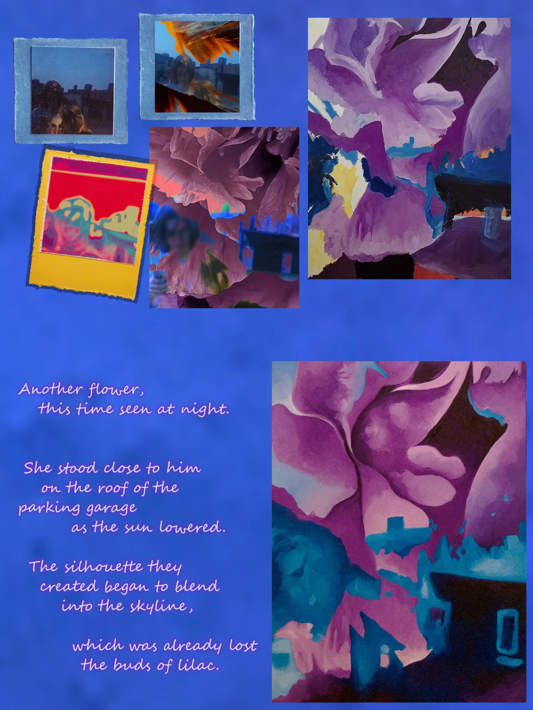 “But every moment they shared was recorded on the same delicate film laid over her eyes. He was the detail, the shadow, the grain, the contrast, and once he left view, there was nothing but white light, and blown out memories. Overexposed, she rubbed her tight eyes and saw his silhouette burned blue into her lids. She thought he must be gone for good this time, having left no open wounds. Instead, only a scar.”